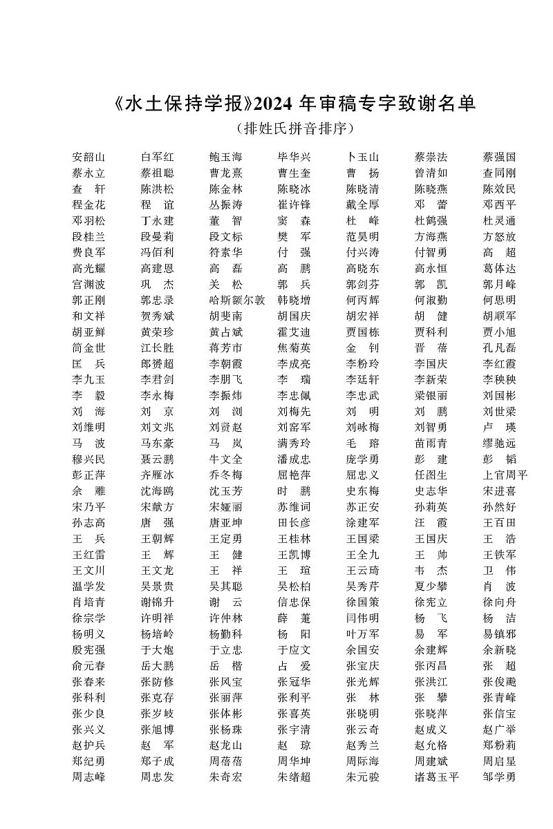 随着2024年的落幕,《水土保持学报》在此向您致以最诚挚的感谢和崇高的敬意!在过去的一年里,您以专业的知识和严谨的态度,为我们期刊的学术质量保驾护航,您的贡献不可或缺。
